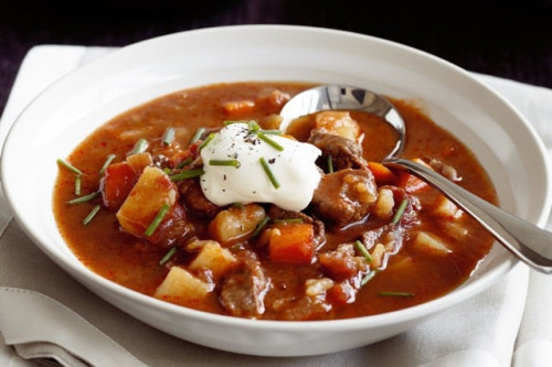 Goulash – Biểu trưng của nền văn hóa ẩm thực truyền thống Hungary Đến Hungary mà chưa nếm thử Goulash thì coi như là chưa từng đặt chân đến đất nước xinh đẹp này nhé các bạn! Goulash – món garu đặc trưng của đất nước Hungary không chỉ là món ăn truyền thống có mặt trong mọi bữa ăn của người Hungary, mà còn được biết đến là một trong những món ngon ở Châu Âu được nhiều thực khách trên thế giới yêu thích. Goulash thực chất là một món súp hoặc món hầm thịt và rau, ướp