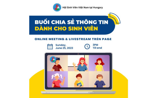 Hội Sinh viên Việt Nam chúc mừng các bạn đã có kết quả học bổng năm 2023. Đây chính là bước khởi đầu suôn sẻ cho hành trình đầy thú vị nhưng cũng nhiều thử thách đang chờ đón bạn phía trước. Mong muốn trở thành một người bạn đồng hành trong chặng đường du học sắp tới của các bạn, Hội Sinh viên Việt Nam tại Hungary sẽ tổ chức BUỔI CHIA SẺ THÔNG TIN CHO TÂN SINH VIÊN 2023, nhằm định hướng, chia sẻ kinh nghiệm và giải đáp tất cả thắc mắc cho các bạn về những